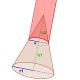 Gesucht ist die Höhe des Kegelstumpfs. Wir wählen also h1 als x.