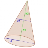 Der Durchmesser der Grundfläche eines Kegels beträgt d=14 cm. Der Kegel soll nun durch einen zur Grundfläche parallelen Schnitt unterteilt werden. Die Schnittfläche hat dabei den Durchmesser 8 cm. Der untere Teil (Kegelstumpf) hat dann eine Höhe von 15 cm.Wie hoch ist dann der obere Teilkegel?